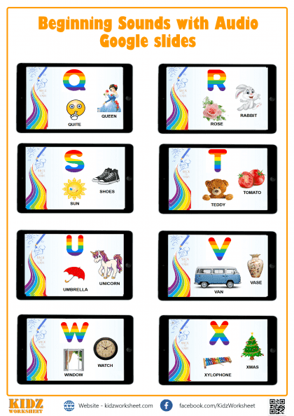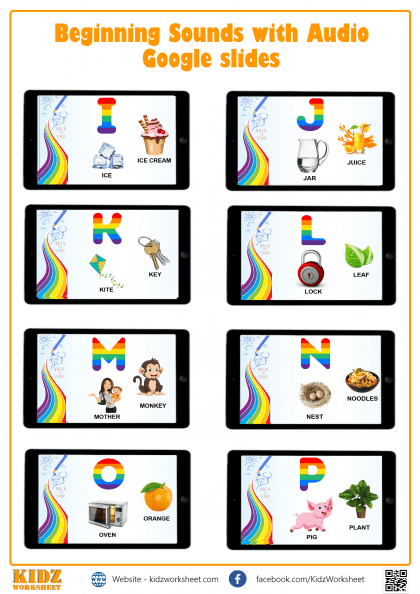 This product includes a Google slide of 27 slides, one for each letter. These slides are embedded with sounds of letters and objects. The students just need to touch the photo of that letter or the object to listen to the sound. This worksheet is designed so that the students can learn new things by themselves only. They just need to touch the photos